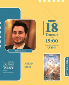 İzmir 18 Temmuz 2025 – Be WaterCafe /Türk edebiyatının genç ve başarılı yazarı Dennis Ayan, 18 Temmuz’da Be WaterCafe’de okurlarıyla buluştu. Aşkın Sırrı kitabı için düzenlenen kitap imza ve söyleşi etkinliği, okurlarının yoğun ilgisini topladı.